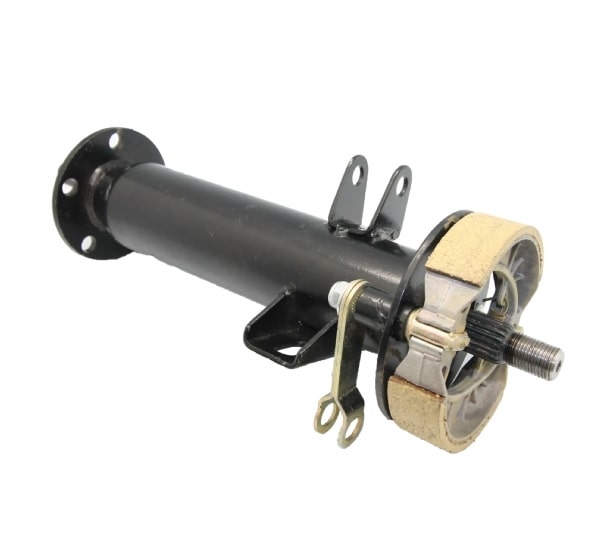 Komplet bagaksel til højre side med bremsearm og bakker. Højre side har den længste aksel.