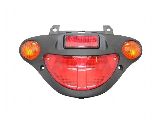 Original og komplet baglygte til ny model Kreidler. Med blinklygter til højre og venstre, rød refleks, baglygte, beslag og fatninger og pærer.