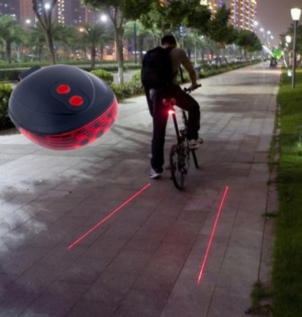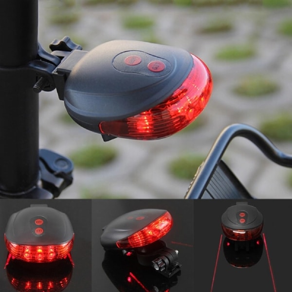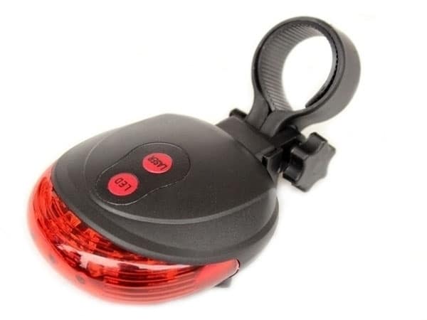 Baglygte med 3 LED-dioder og laser der “tegner” vejen op, så andre trafikanter kan afstandsbedømme. Monteres på sadelpinden og bruger 2 AAA-batterier (ikke inkl.)