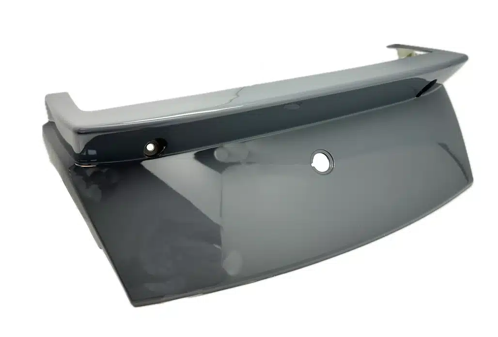 Blank gråt skjold, der sidder over baglygten og mellem blinklygter bagpå, hvori låsecylinderen til rummet under sædet sidder.