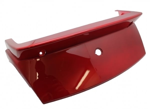 Rødt skjold, der sidder over baglygten og mellem blinklygter bagpå, hvori låsecylinderen til rummet under sædet sidder.