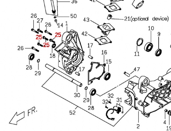 Original bolt, der bruges når motorsiderne skal samles. Der skal bruges 3 stk. af denne bolt – det er nr. 25 på billedet.