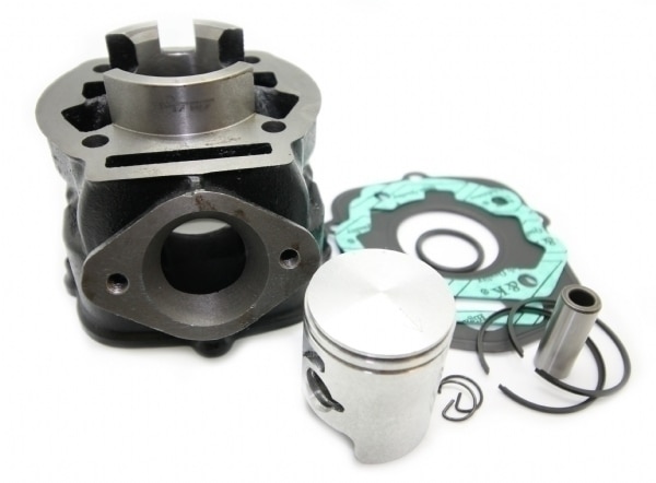 Komplet højkvalitets cylinder med stempel, krydspind, låseringe og sodsæt. Passer på nye modeller med bred/lang skyllekanal samt Aprilia SX50 fra '06-'11.