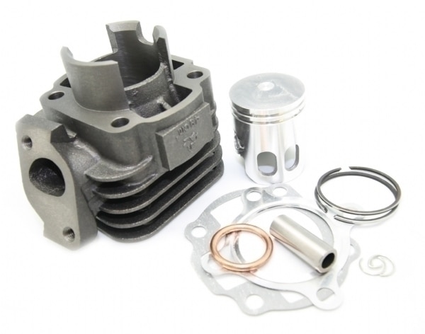 Komplet 40mm cylinder leveres med stempel, stempelringe, krydspind og komplet sodsæt. Cylinderen passer både på motorer med og uden begrænsning i blokken. Dette er en 40mm støbejerns cylinder med Ø12 krydspind i stemplet, den har 5 skyllekanaler og leveres komplet med sodsæt til. Den kan anvendes til både 30, 45km/t og til motorer med og uden begrænsningen i motorblokken. Det anbefales at tilkøre ca. 300km med halv gas og ekstra olie i benzinen!