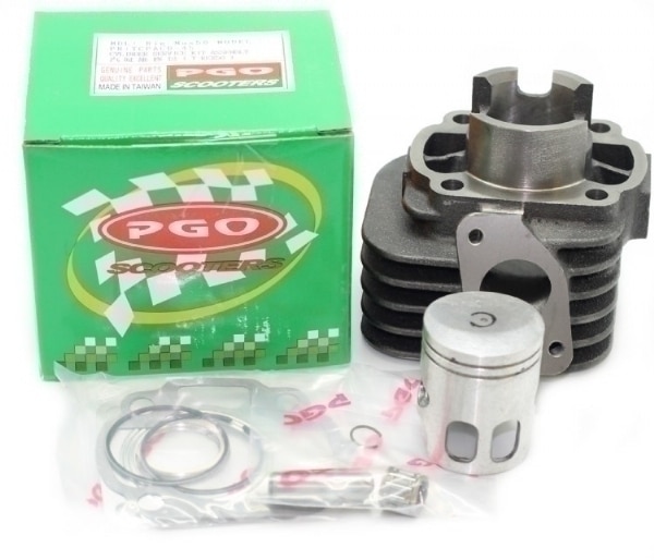 Original cylinder fra PGO med stempel, pakninger og nåleleje. Det er samme cylinder der bruges til både 30 og 45 km/t. Denne cylinder er original og er produceret af PGO. Det er en 40mm cylinder og stemplet har Ø10 krydspind. Der medfølger stempelringe, top-, bund- og udstødningspakning samt nåleleje – alt sammen originale PGO reservedele.