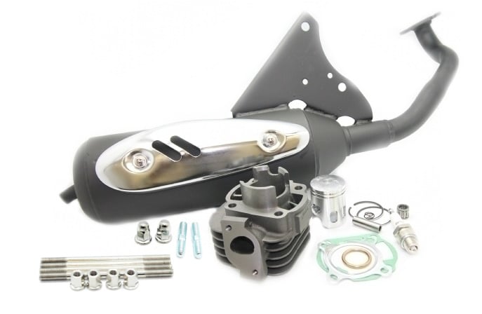 Vil du spare penge og trænger din scooter alligevel til ny cylinder og udstødning, så er dette kit lige noget for dig, for der er ALT hvad du skal bruge for at skifte cylinder og udstødning på din scooter!