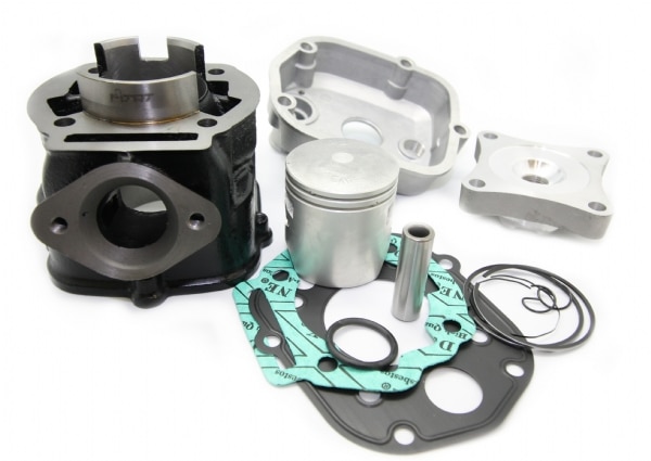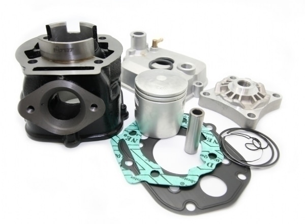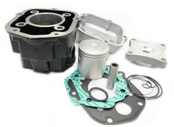 Komplet cylinderkit i super kvalitet med cylinder, stempel, sodsæt, krydspind, låseringe og både inderste og yderste topstykke. Passer også til Aprilia SX50 fra '06-'11. HUSK! Fjern begrænsningen i motorblokken førend cylinderkittet monteres – ellers kan stemplet ikke gå i bund – stemplet er 49mm højt og midten af krydspinden er 22mm fra bunden af stemplet – disse mål er vigtige i forhold til om stemplet går mod slaget på krumtappen.
