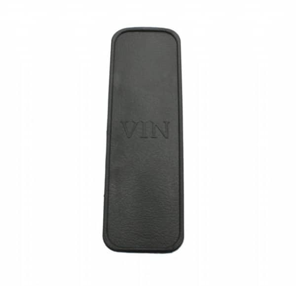 Lille sort plastik dæksel, der dækker for stelnummeret. Teksten på dækslet står på langs.