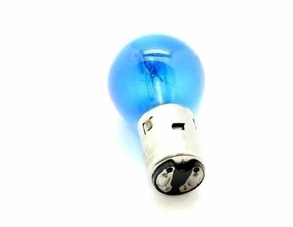 Blå forlygtepære på 35/35W, som passer i mange forskellige modeller. Blå pære med BA20d-sokkel.