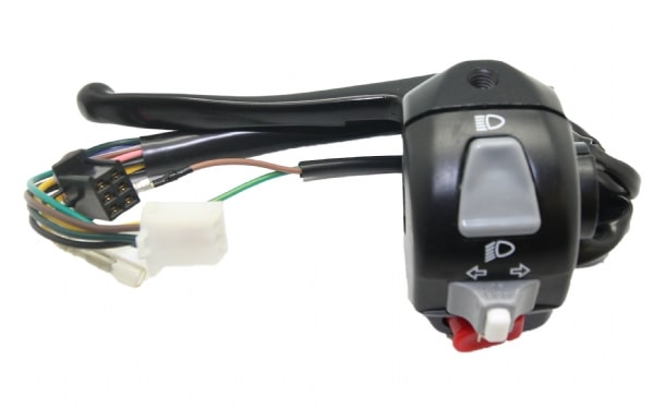 Originalt venstre grebkonsol, komplet med grebklinge og bremselyskontakt.