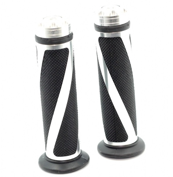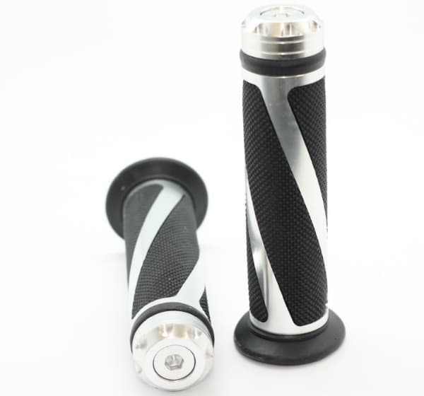Super fede håndtag med CNC-udfræsninger. OBS! Vær' forsigtig ved montering – alu. kan skære i gummiet. Brug godt med smøremiddel eller luft ved montering. Der kan ikke reklameres over revnet håndtag uanset hvordan det er monteret, man skal være forsigtig.