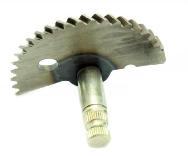 Kickstarteraksel til 4T scooter. Mål: Total længde på aksel: 57mm Længde på aksel (fra halv måne til top): 46,5mm Afstand fra halv måne til rille: 27mm Afstand fra halv måne til tænder (hvor pedalen griber fast): 29mm Diameter på aksel: 14mm