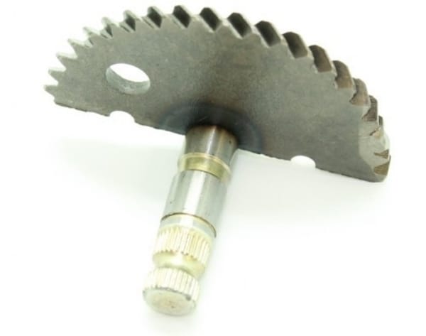 Kickstarteraksel til GY6 4-takts scooter. Kickstaterakslen har følgende mål: Total længde på aksel: 57,5mm Længde på aksel (fra halv måne til top): 47mm Afstand fra halv måne til 1. rille: 9mm Afstand fra halv måne til 2. rille: 27mm Afstand fra halv måne til tænder (hvor pedalen griber fast): 30,5mm Diameter på aksel: 14mm