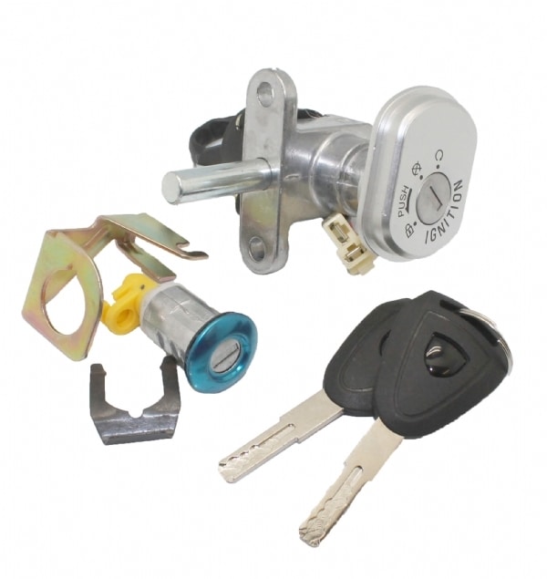 Låsesæt med tændingslås, låsecylinder til rummet under sædet og 2 nøgler.