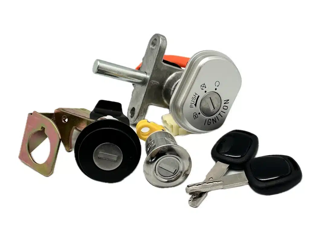 Komplet låsesæt med tændingslås, låsecylinder til rummet under sædet samt lås til bagageboks – med 2 nøgler.