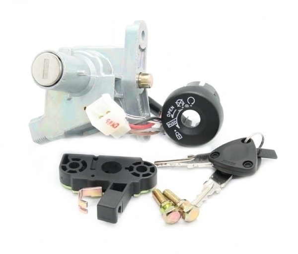 Komplet låsesæt med 2 stk. nøgler. Passer på 2-takts modeller fra 2002 og frem med kabeltræk til sædelåsen.