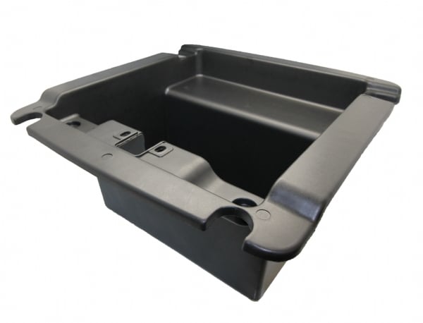 Boks under sædet i sort plast, der kan bruges til opbevaring.