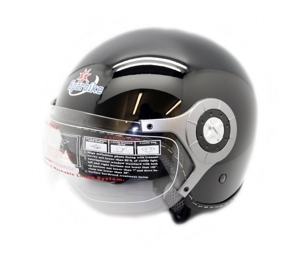 Flot pilothjelm i blank sort med visir – hjelmen har en super god pasform, flotte detaljer og design!