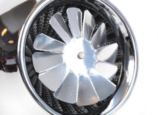 Fed powerluftfilter med rotor, der drejer rundt når motor kører. Med 35mm bespænding på karburatoren.