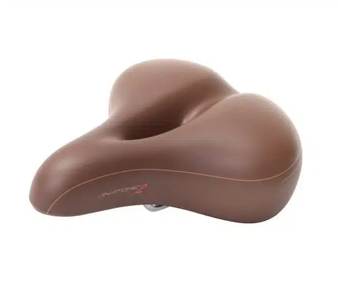 Kvalitets gel-sadel fra Contec – Anatomic 2 City-modellen måler 253x207mm (LxB) og er i mørk brun.