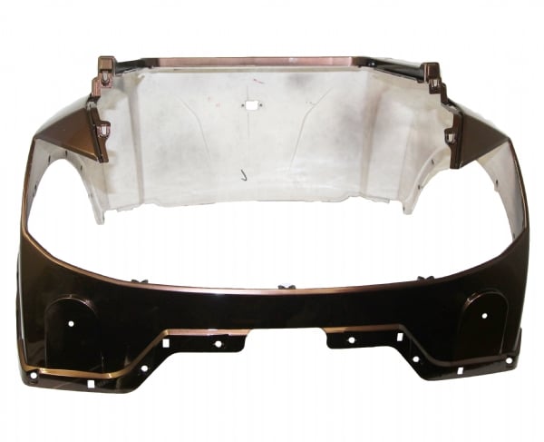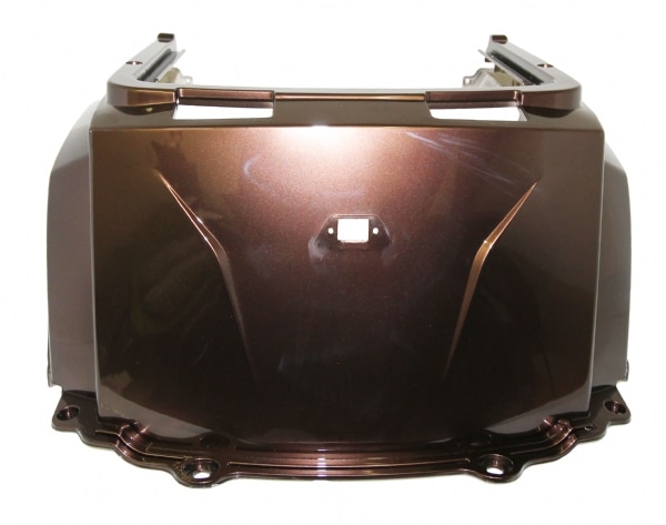 Metal brun skjold, der sidder under sædet og over bagstellet og baghjulene.