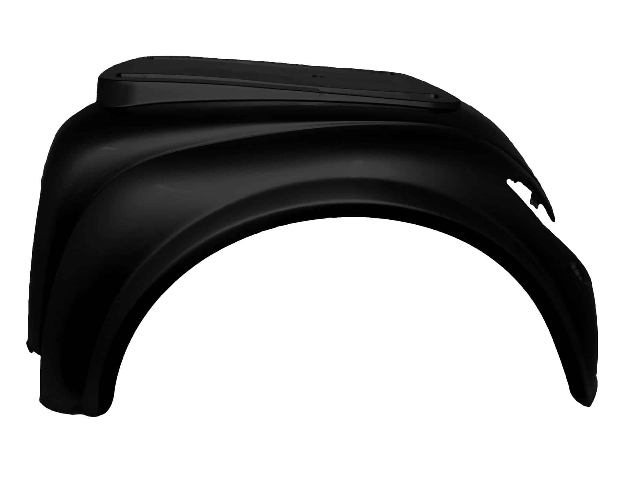 Sort skjold, der sidder under sædet og over bagstellet og baghjulene.