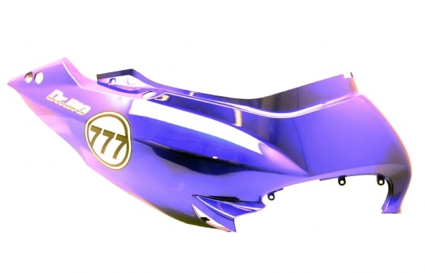 Originalt højre sædeskjold i blå (#4P) Stafferingen er tal – “777”.