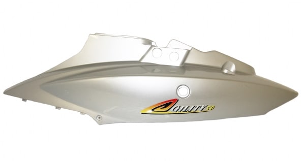 Venstre sædeskjold i sølv og leveres med dekal som på billedet. OBS! Der kan forekomme små ridser på skjoldet.