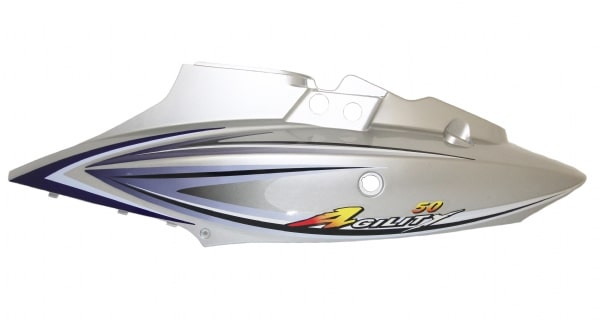 Venstre sædeskjold i sølv og leveres med dekal som på billedet.