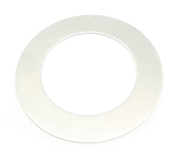 Tynd metalskive der ligger sammen men gummi pakningen ved gaffelbroen under det nederste sæt styrfittings.