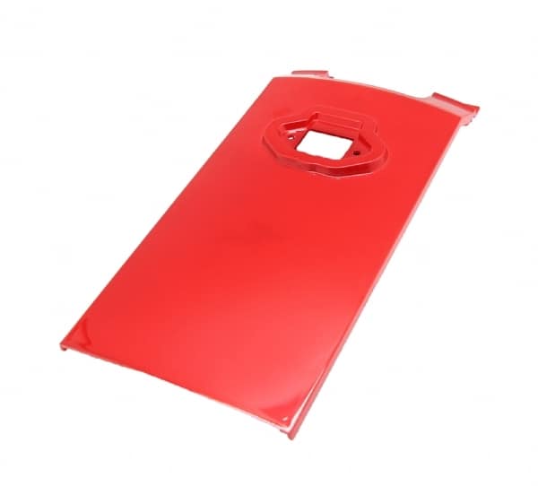 Rødt skjold, der sidder foran bag benene, hvor ladestikket sidder i.