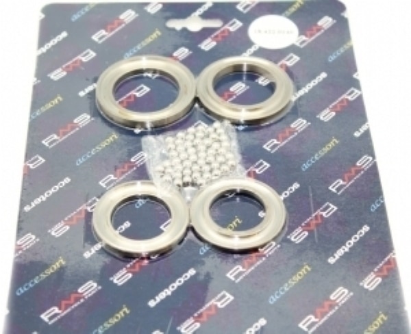 Komplet styrfittingssæt til Aprilia. Mål: (udv./indv. mål) Øverste sæt Øv. lejeskåle: 43/25,5mm Ne. lejeskål: 43/27,5mm Nederste sæt: Øv. lejeskål: 50/34mm Ne. lejeskål: 48/31,5mm