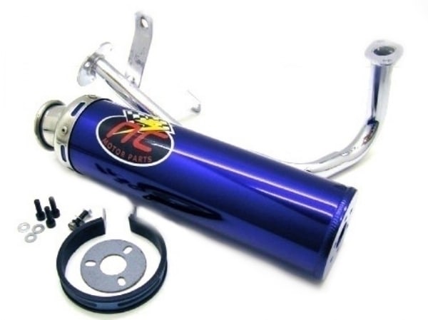 Racing udstødning med alu. dæmper, bruges til 125ccm modeller med GY6 motor (kun til 125cc MC-scooter) – LÆS BEMÆRKNINGER – tilpasning er NØDVENDIG til visse modeller!