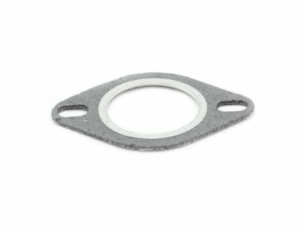Flad udstødningspakning med metal forstærkning i Ø30 og hvor der er mellem 42,5-63,5mm mellem inderste og yderste side af bespændingens hullerne. Udseendet kan variere fra billedet.