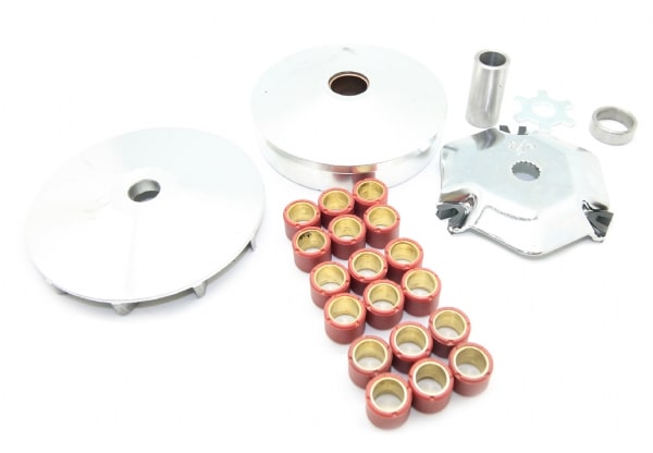 Variatorkit i super kvalitet med en større diameter (98mm) end standard og sikre derfor den mest optimale acceleration og topfart. Dette variatorkit indeholder variatorskål, bagplade, 3 sæt ruller 4,5g/5,5g/6,5g, rørstykke, begrænsningskive, stjerne for blæsehjul og blæsehjul.