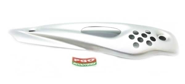 Originalt varmeskjold i mat sølv til udstødninger uden katalysator – kan også bruge til andre udstødningsrør med evt. tilpasning. OBS! Der kan forekomme små ridser.